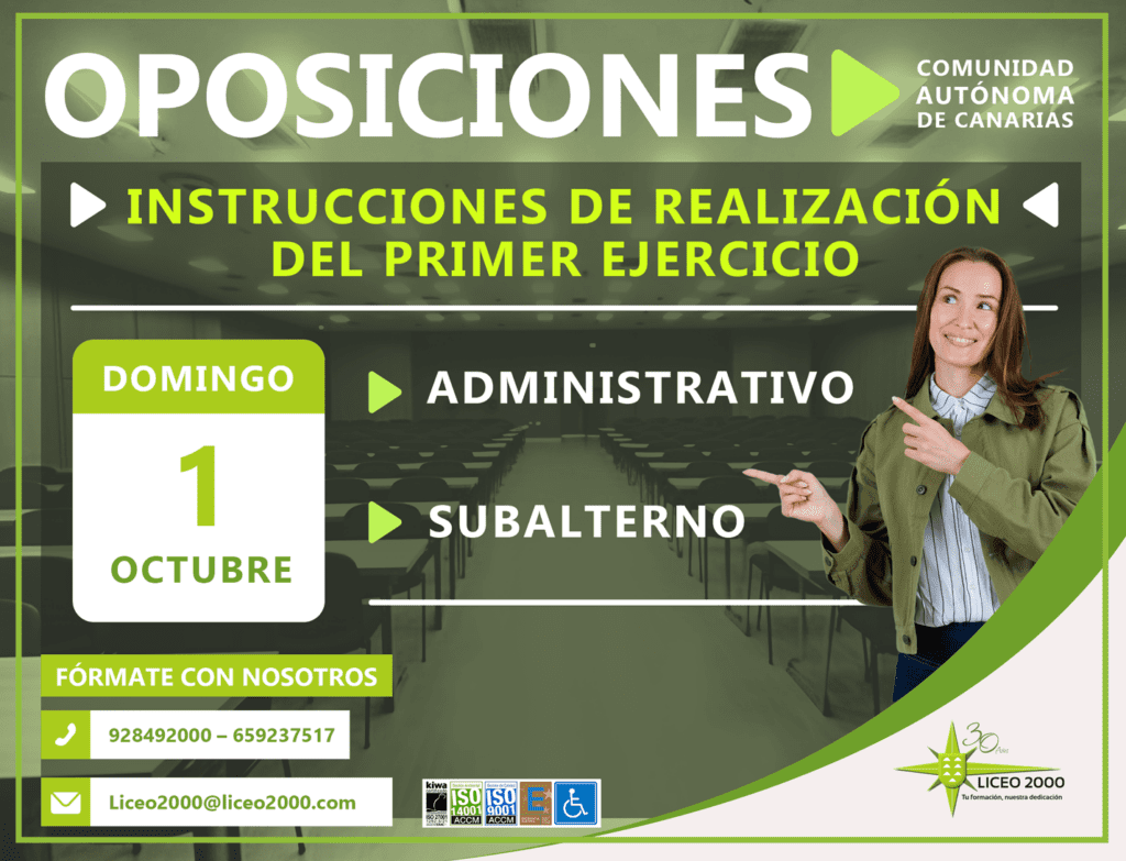 Liceo 2000Sin categoría [OPOSICIONES] Instrucciones de realización del primer ejercicio – Subalterno y Administrativo – Comunidad Autónoma de Canarias (1 OCTUBRE)